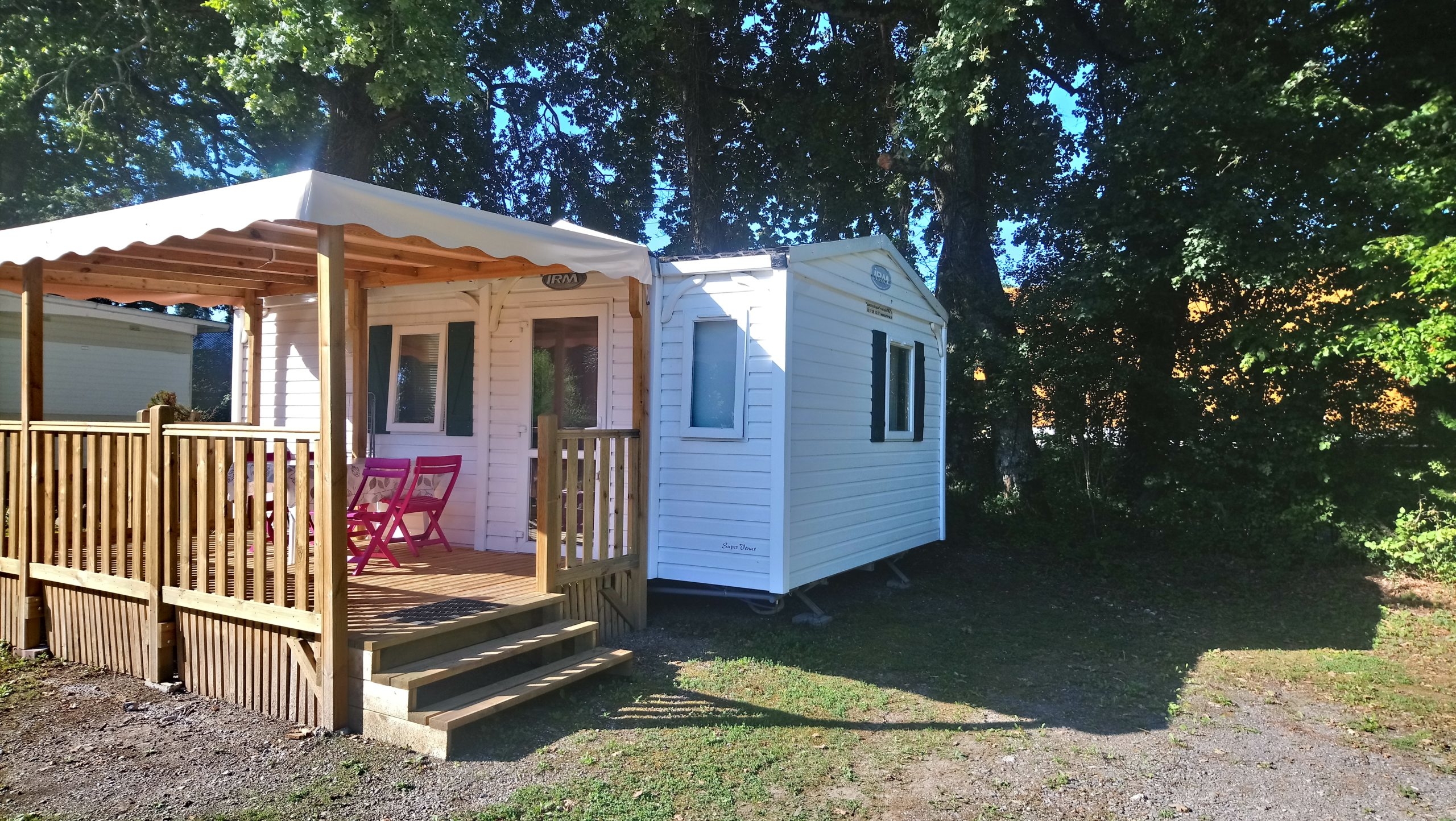 Emplacement sur terrain plat, spacieux avec pelouse.